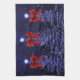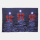 Christmas Sparkling Trees Navy Blue Faux Red Bow Tea Towel
