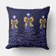 Christmas Sparkling Trees Navy Faux Gold Bow Cushion