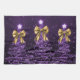 Christmas Sparkling Trees Purple Faux Gold Bow Tea Towel