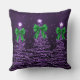 Christmas Sparkling Trees Purple Faux Green Bow Cushion