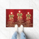 Christmas Sparkling Trees Red Gold Faux Bow Doormat