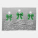 Christmas Sparkling Trees Silver Faux Green Bow Tea Towel