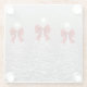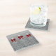 Christmas Sparkling Trees Silver Faux Red Bow Glass Coaster