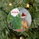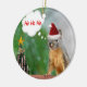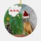 Christmas ornament with a photo of a cute squirrel wearing a Santa hat and saying "Ho, ho, ho!" There is a decorated Christmas tree next to the squirrel. A fun Christmas ornament for all you squirrel lovers!