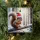 Christmas Squirrel On Snowy Tree Branch Ceramic Ornament