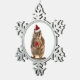 Pewter snowflake ornament with a photo of a Christmas squirrel wearing a red and white Santa Claus hat, and holding a candy cane with a big red bow. You'll treasure this fun Christmas tree ornament for years to come!