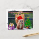 This design features a brown and white Squirrel . The Squirrel has a red Santa hat on looking out at you from a park bench .The bench has Christmas a Christmas tree with presents and a merry Christmas sign on the walk rail.This postcard would be great for any one at xmass time. Click the Customise It button to add your own text or images to create a unique one of a kind design! Get creative On this postcard