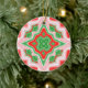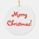 One one side has the colourful Christmas star quilt block pattern in red and green. The other side of the ornament says, "Merry Christmas". Fully customisable, you can change the text to your own words if you like.