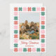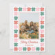 This flat holiday card features a single photo framed in a solid line and holiday patchwork geometric shapes forming a border around the photo.