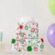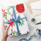 This wrapping paper has a mid-century modern design of retro starbursts and circles in Christmas colours. Fun and festive.