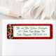 Christmas starfish and holly return address labels. White sea stars and holly design with red, twinkling stars background. Green text is printed over a white rectangle using modern font style in dark green.