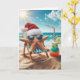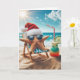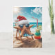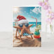 A starfish wearing a Santa hat and sunglasses relaxes on a beach chair by the ocean with a cocktail.