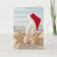 Pair of starfish with Santa hat on a Season's Greetings message in bottle in beach sand from couple.