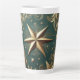 This enchanting latte mug is inspired by the magical glow of starlight during the holiday season. The design features a serene, midnight-blue background adorned with sparkling golden stars, creating a celestial Christmas night sky. At the center, a beautifully detailed Christmas tree stands tall, decorated with twinkling lights and a shining star on top, radiating warmth.