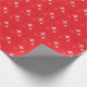 This wrapping paper has retro vibes, featuring a Christmas star pattern with a red background. The stars are pink, crimson, blue, and rose.