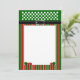 Christmas Stationery Paper Thank you notes, invitations, to do lists, etc. Red, white and green with black belt. Front has an open space for writing, back contains decorative design. Writing paper