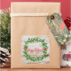 This large size square sticker is shown in a festive Christmas holiday wreath print.