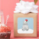 This holiday sticker is shown in the square shape with a cute festive Christmas polar bear print.