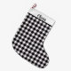 This Christmas stocking is shown in a black and white color buffalo plaid print.