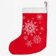 This Christmas stocking is shown in a festive winter snowflakes print.