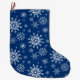 This Christmas stocking is shown in a festive winter snowflakes print.