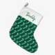 Candy canes with green and white stripes are tiled over green background. On the front, white cuff area shows off the Green text of name that you personalise