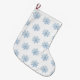 Christmas stocking with blue snowflakes against a white background