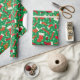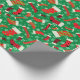 This holiday themed wrapping paper is decorated with charming Christmas stockings in red and green, each decorated with its own unique pattern of polka dots, stripes, diamonds, stars, and more.  Background is a pattern of delicate snowflakes on green.  Perfect for wrapping a special gift!  Designed by artist © Susan Coffey.