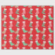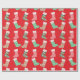 Christmas stockings on red wrapping paper great for the holidays, two sizes available.