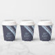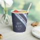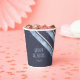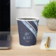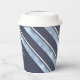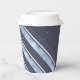 Part of a coordinating design set for Christmas, this paper cup features diagonal stripes with an outdoorsy theme in shades of sky blue, navy and white. Optional 'Happy Holidays' text and a template have been provided to add your name and/or other text. Search ID861 thru ID864 to see additional color options and other products in this modern, Christmas design set.