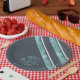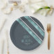 Part of a coordinating design set for Christmas, this paper plate features diagonal stripes in shades of watchet blue, dark teal and white. Optional 'Happy Holidays' text and a template have been provided to add your name and/or other text. Search ID861 thru ID864 to see additional color options and other products in this modern, Christmas design set.