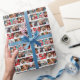 It's easy to add all your pictures and your family name to make a festive gift wrap. This modern photo collage stripe is perfect to wrap your gifts for family gatherings during the holidays. Your family or friends will love the wrapping paper as much as the gift.
