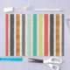 Elegant hand made colourful Christmas stripes with gold sparkles and stars seamless pattern.