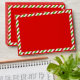 Red, white and green stripes border the outside and line the inside of these these red A7 envelopes and feature your FREE return address and Merry Christmas on the back flap. Fits a 5" x 7" invitation or change to the size you need.