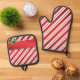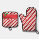 Christmas Stripes with Holly Oven Mitt & Pot Holder Set