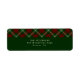 Elegant modern rustic dark green and red plaid tartan with faux gold typography script personalised Christmas holiday mailing return address labels.