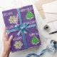 Happy Holidays sugar cookie collection on white snowflakes and purple background.
