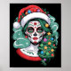 Christmas Sugar Skull Art Woman Santa Hat Festive Poster