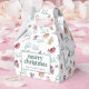 This is a modern and cute family friendly favour box with Merry Christmas in a bold and fun typography. The pattern features cute watercolor graphics of gingerbread houses, cookies, candy canes, snowmen, holly, penguins and sleighs, along with the script text falala.