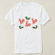 A basic white t-shirt with 'ho ho ho' in red and gold letters and holly, from a handpainted paper collage design by Judy Adamson. This designlso available as a Christmas card and on gifts and apparel.