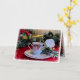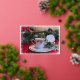 A delicate teacup on your Christmas table with the holiday decor of evergreen and roses. This is a beautiful picture of “classic” style Christmas. It is both personal and warm. Add your photo and greeting on the inside for an elegant and traditional correspondence. Have a wonderful holiday season. Blessings!