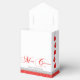 Your quests will enjoy this unique Christmas tea party tent favour box.  Fill it with goodies and say Merry Christmas.  Favour box features a red teapot with silver bow on the front flap with Merry Christmas on the front bottom with a space for your custom text.  Add your name or other greeting you would like to include using the template provided.