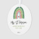 Cute personalised teachers Christmas ornament with festive rainbow, teachers name and text "always make the nice list". Make a wonderful gift to your favourite teachers or someone special.