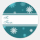 Christmas gift tag stickers in turquoise teal peacock bue and white classic snowflakes pattern, fun and contemporary for the holiday season. Available in matching cards and postcards.