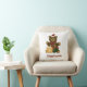 Personalized Christmas teddy bear pillow. Red and White with an adorable teddy bear on front and teddy bear pattern on back.