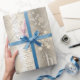 This Christmas gift wrap design features a beautiful text pattern dotted with snowflakes all in shades of shimmering gold. Some of the text includes 'Merry, Bright, Noel, Season's Greetings, Peace, Joy and Happy Holidays.' Search ID257 to see other color options and additional products with this design.