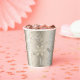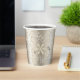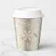 This Christmas paper cup design features a beautiful text pattern dotted with snowflakes all in shades of shimmering gold. Some of the text includes 'Merry, Bright, Noel, Season's Greetings, Peace, Joy and Happy Holidays.' Search ID257 to see other colour options and additional products with this design.