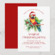 Join us for a delightful tropical Christmas party invitation, showcasing a vibrant tropical bird adorned with a Santa hat and surrounded by festive greenery. Personalise it with eye-catching red typography to make your celebration truly unforgettable!