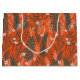 This Christmas theme wrapping paper pattern features Christmas greenery with cute white flowers with a custom orange-red background.