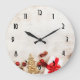 Christmas Themed Items on a Rustic Wooden Board Large Clock